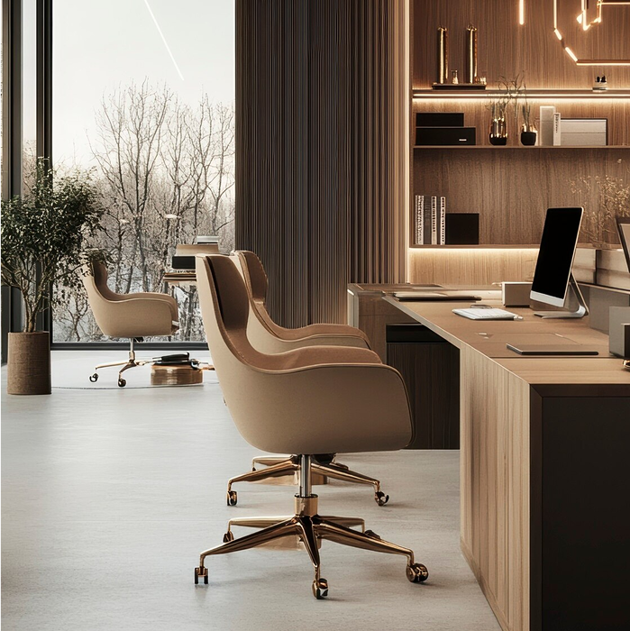Este despacho está pensado para ejecutivos, coaches o profesionales que reciben clientes. Cuenta con escritorio amplio, sillas de alta gama, iluminación LED cálida, armario y decoración sobria y profesional. Proyecta una imagen impecable y trabaja con total comodidad y concentración.